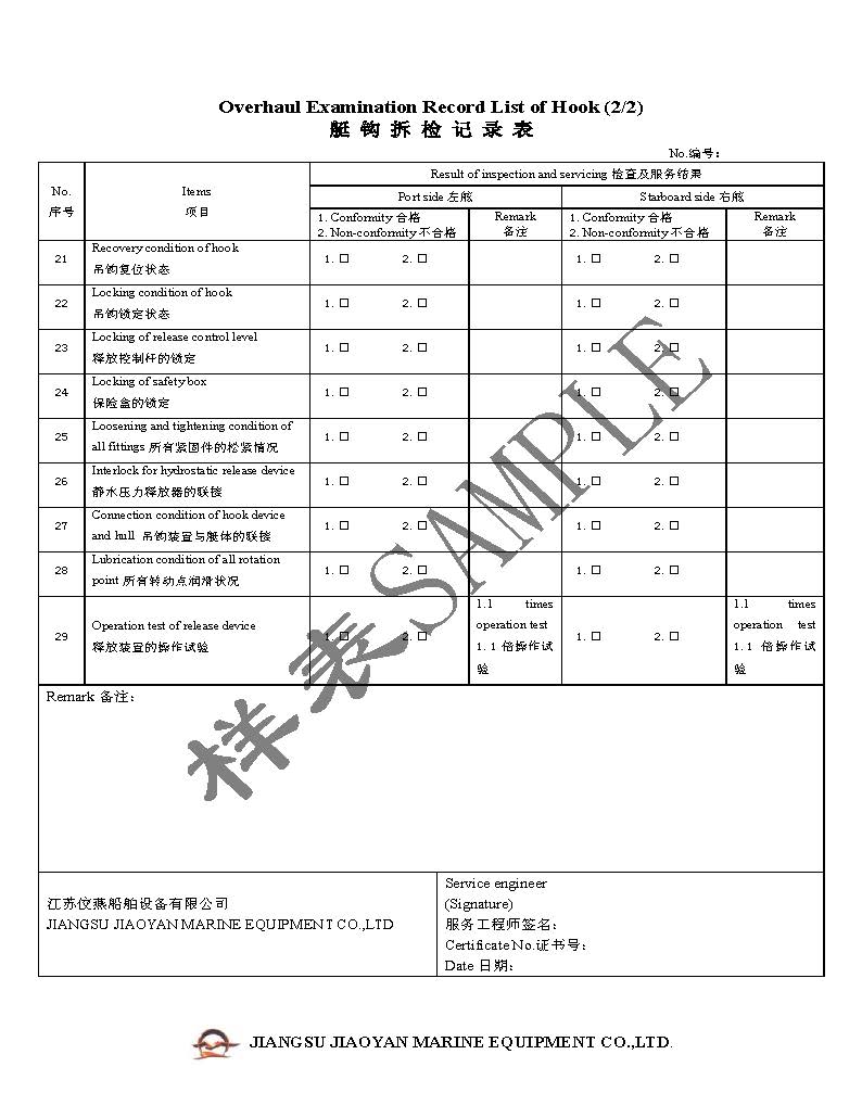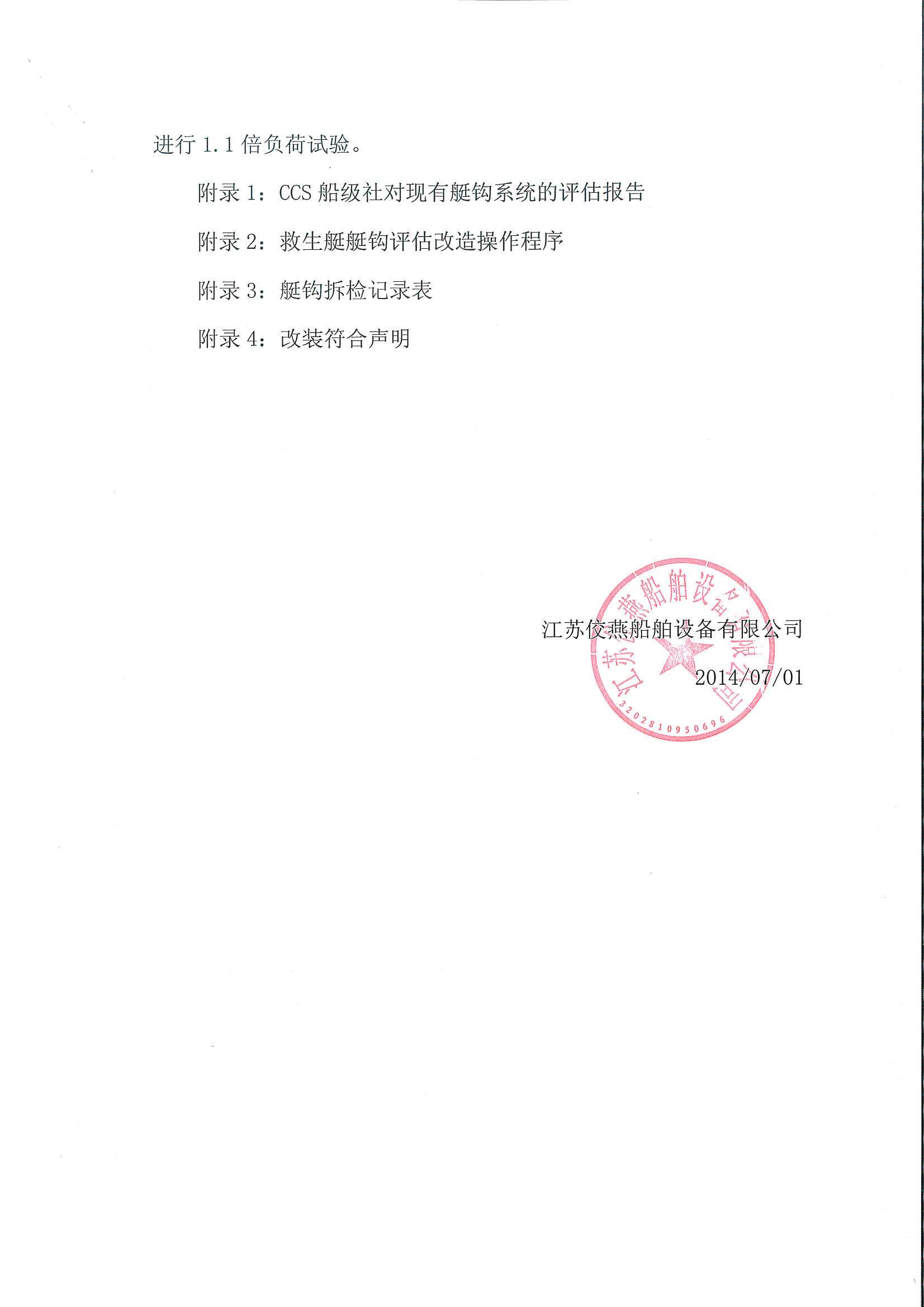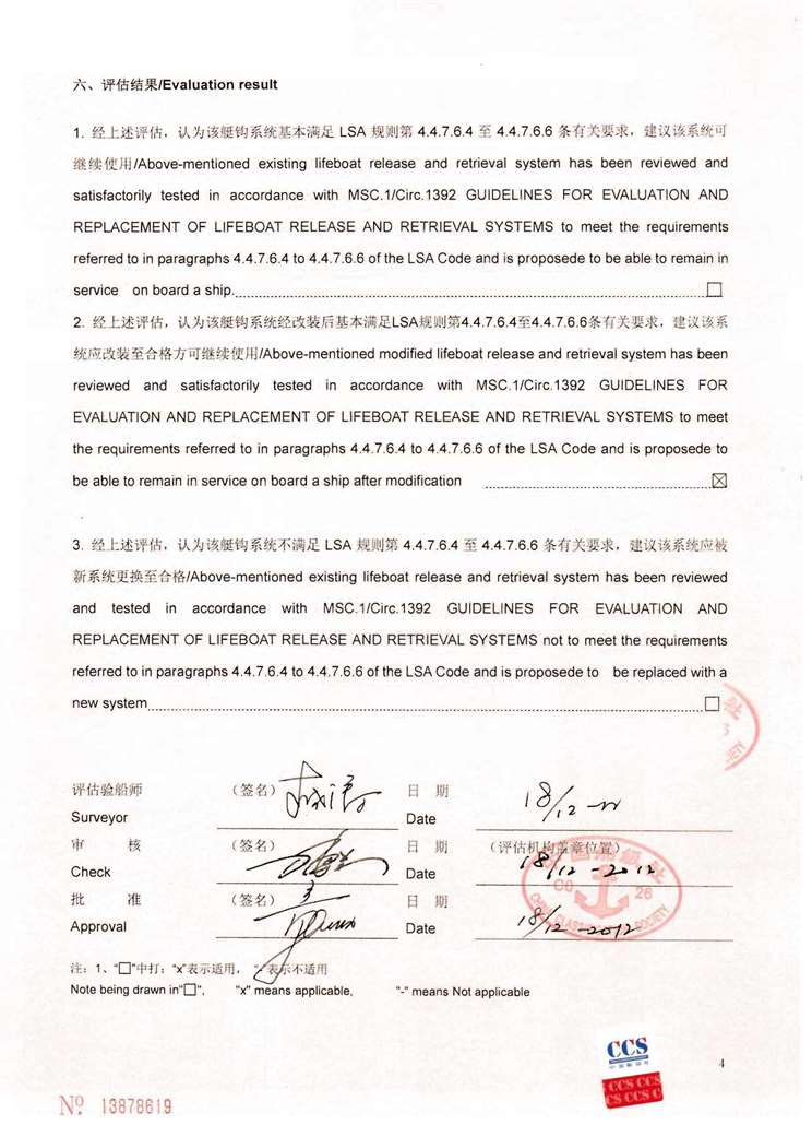 附录1:CCS船级社对现有艇钩系统的评估报告 示例1