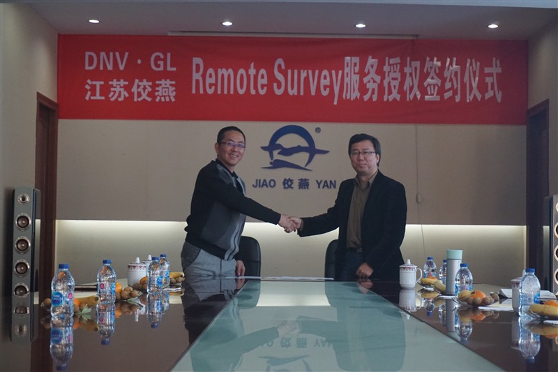 2019年11月15日,DNV • GL江阴区产品部经理陈伟先生与荣耀体育官方网站副总经理华伟荣先生签署了remote survey检验服务授权协议。该协议意味着产品在过程检验中,DNV • GL验船师将不再需要亲临现场,通过在线连接、视频直播,来进行远程检验。